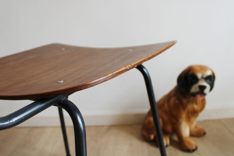 Retro schoolstoel op metalen poten. Leuk voor rond de eettafel, in de horeca of voor achter je bureau natuurlijk.