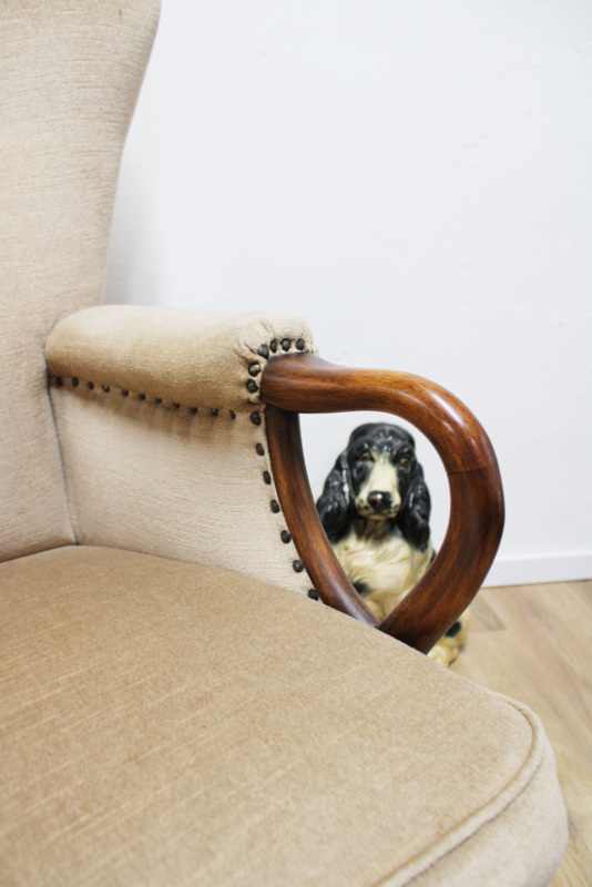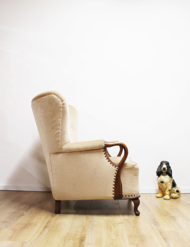 Prachtige vintage oorfauteuil met velvet bekleding uit de vorige eeuw. Misschien dat oma hier vroeger lekker in zat te breien ;).