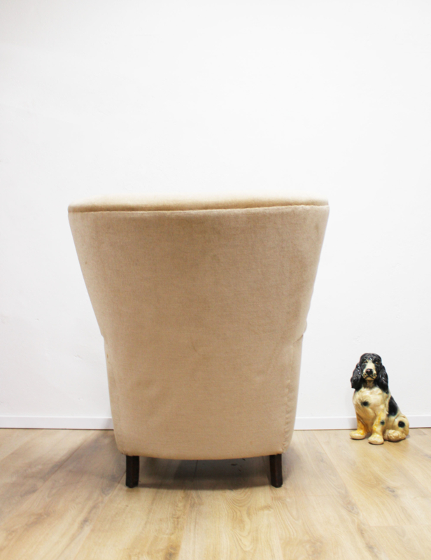 Vintage fauteuil bekleed met beige velvet. Antieke velours stoel