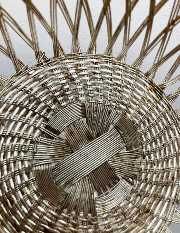 Zilverkleurige gevlochten mandje, antiek? Vintage broodmandje zilver filigraan?