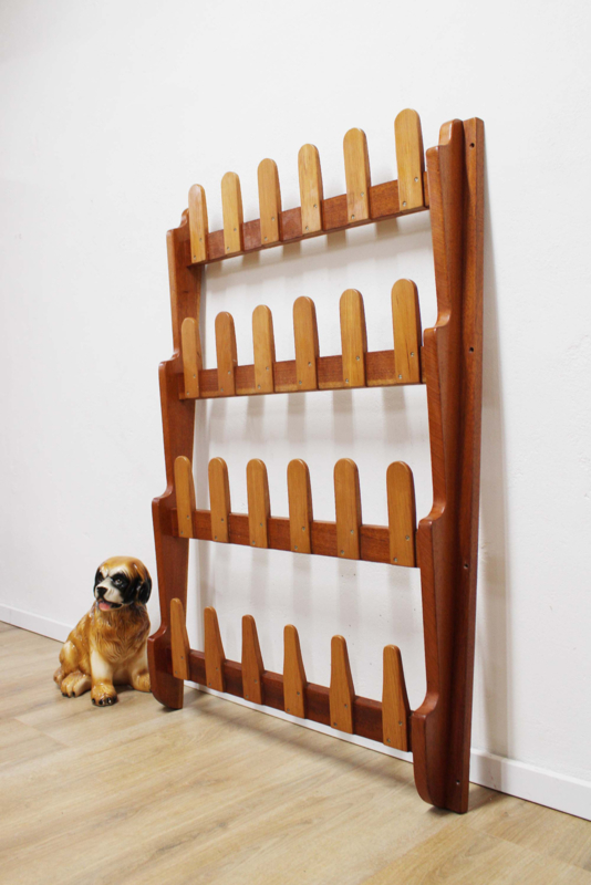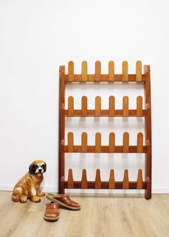 Houten vintage schoenenrek. Retro wandrek / kapstok