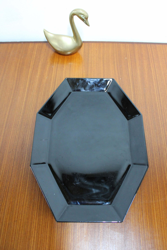 Zwart glazen vintage schaal- Arcoroc -France Octime. Retro bord