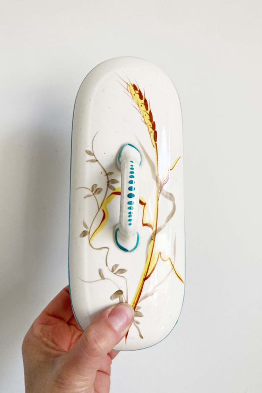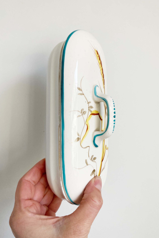 Antiek aardewerk zeep/kammen bakje - Société Céramique Maastricht. Vintage schaaltje met deksel.