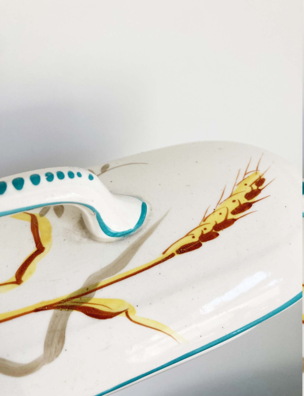 Antiek keramieken bakje met deksel van Société Céramique Maastricht.