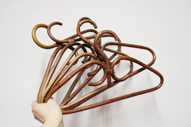 5 vintage kledinghangers gemaakt van rotan/ bamboe.