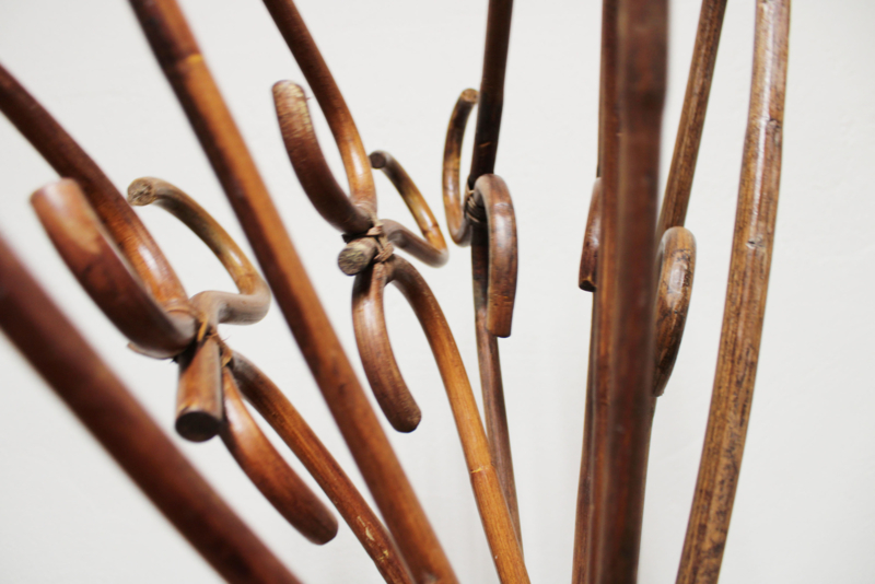 5 rotan vintage kledinghangers. Set retro kleerhangers / bamboe kapstok