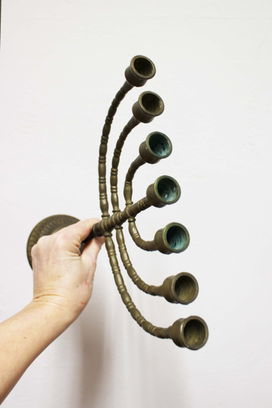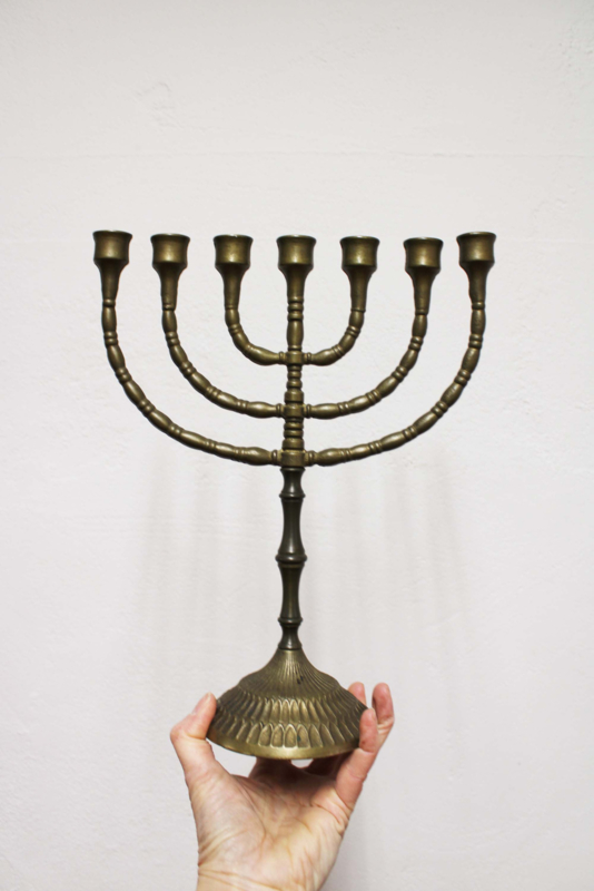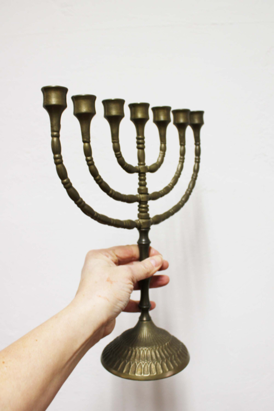 Joodse vintage kandelaar. 7 armige Menora kaarsenhouder