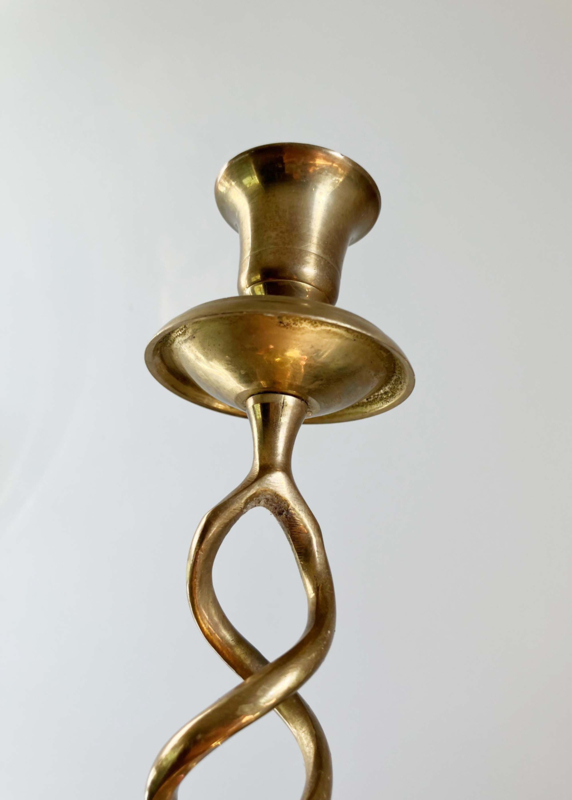 Sfeervolle vintage kandelaarr, vermoedelijk van messing maar daar durven we geen garantie op te geven. Leuk om cadeau te doen of om te krijgen.