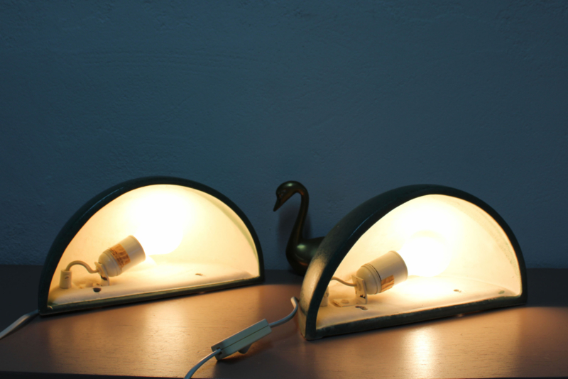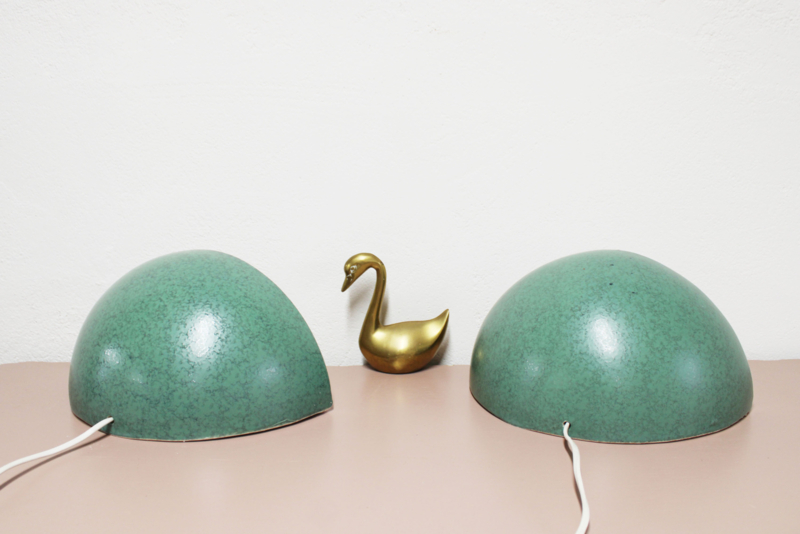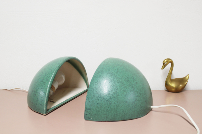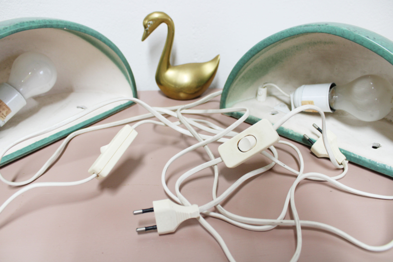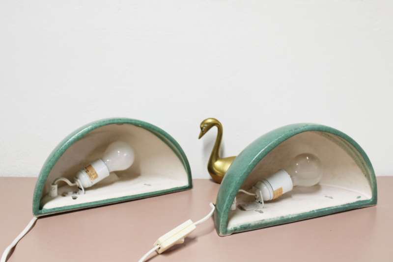 Set aardewerk vintage wandlampen. Groene retro Ikea lampen