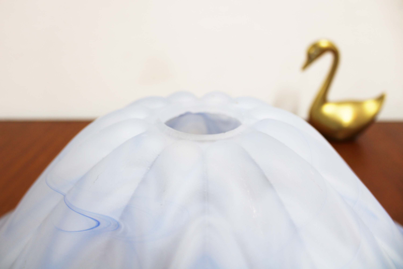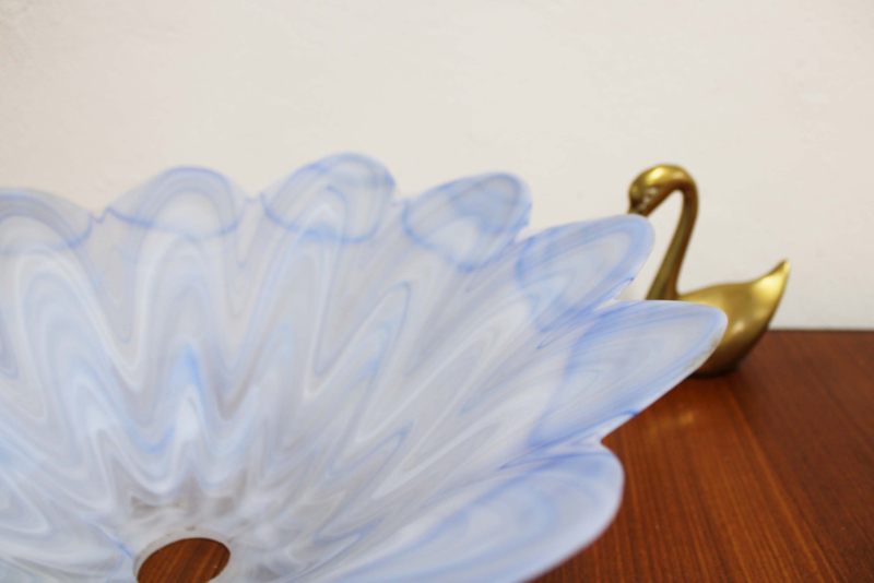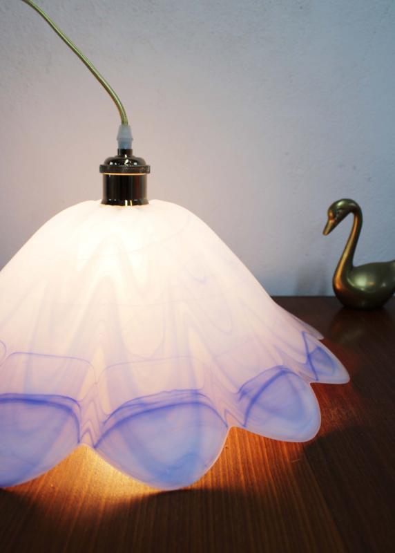 Wit vintage hanglamp van blauw/wit glas. Glazen retro lamp