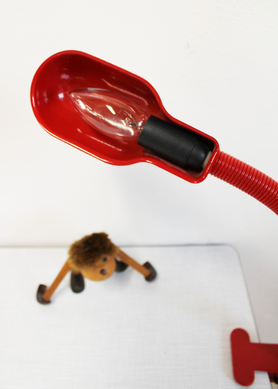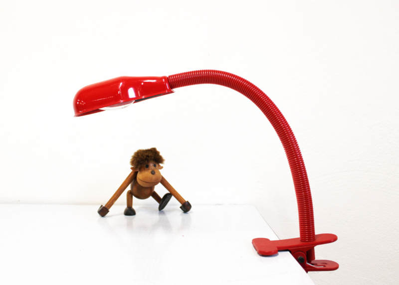 Rode vintage klemlamp. Retro design lamp in Hebi stijl.