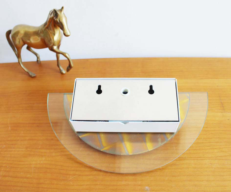 Prachtig goudkleurige messing wandlampje.in halve maan vorm. Leuk voor in de retro woonkamer, in de hal of te gebruiken als nachtlampje op de Bohemien slaapkamer.