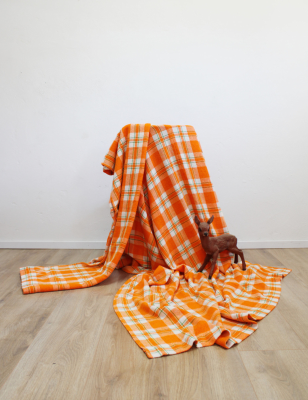 Set geruiten vintage gordijnen. 2 oranje retro overgordijnen - jaren 70