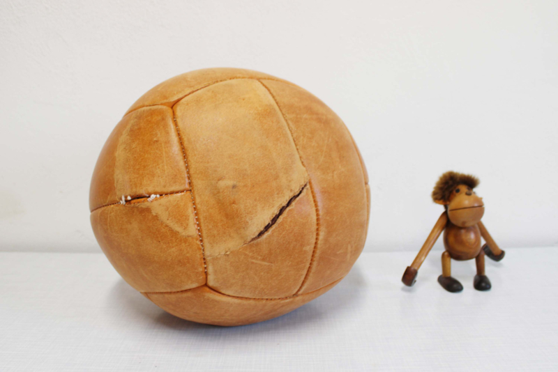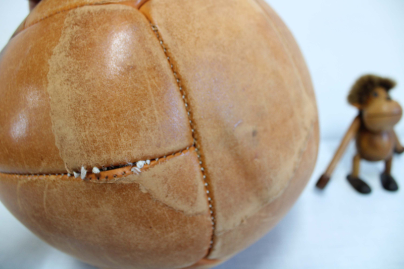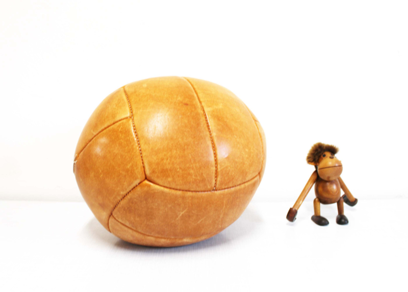 Lederen vintage medicijnbal. Grote zware retro bal van leer