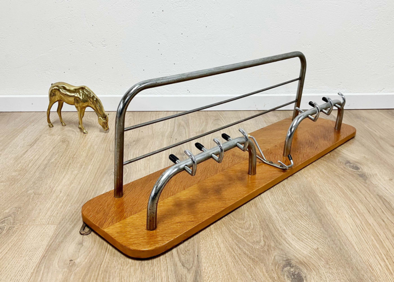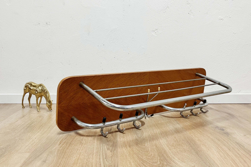 Vintage kapstok met hoedenplank. Retro Mid Century wandkapstok