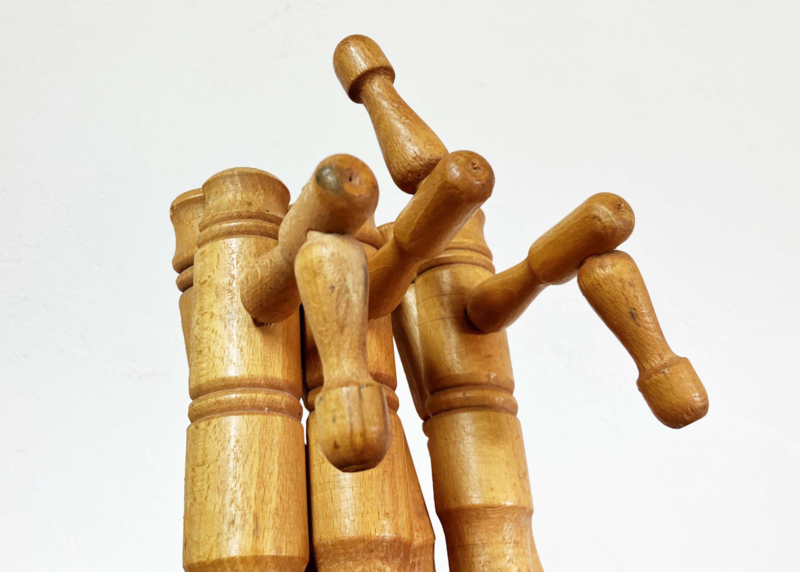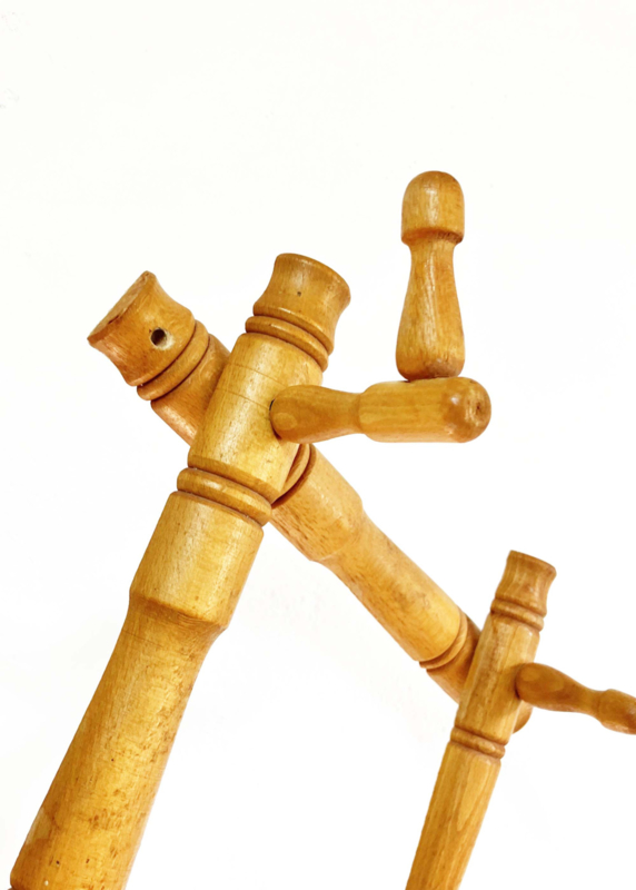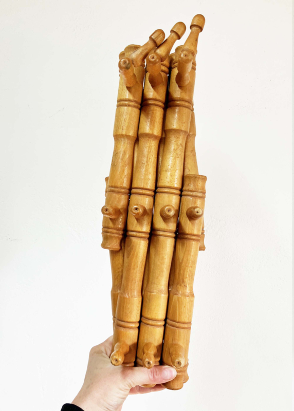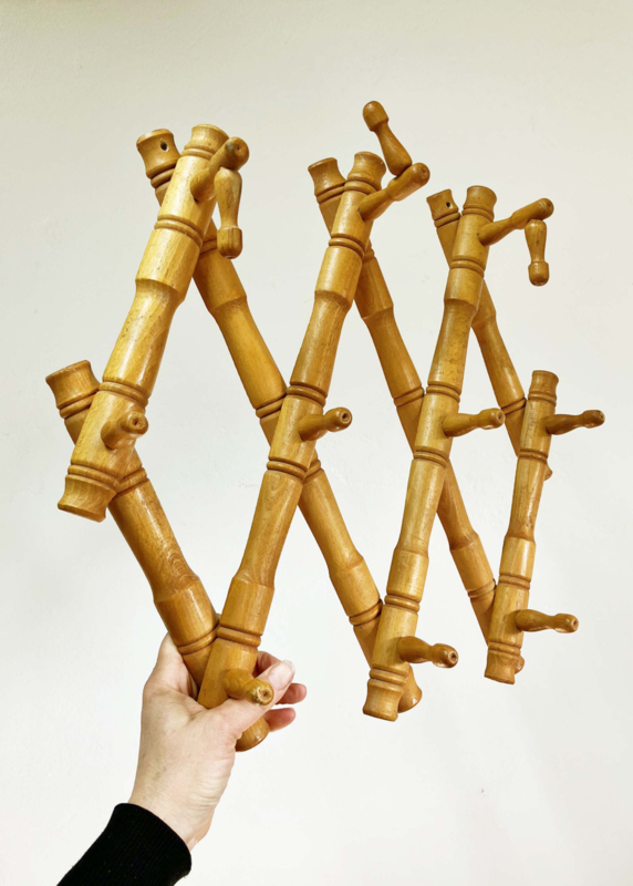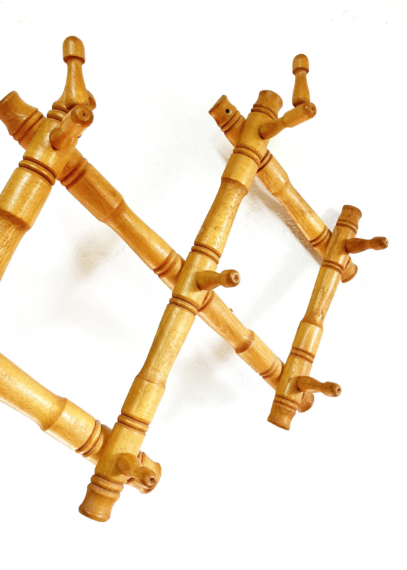 Houten vintage harmonica kapstok. Retro kapstokje / wandrek - Faux Bamboo