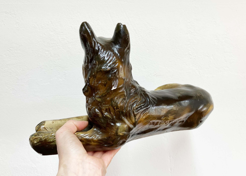 Groot gipsen honden beeld. Vintage herdershond beeldje