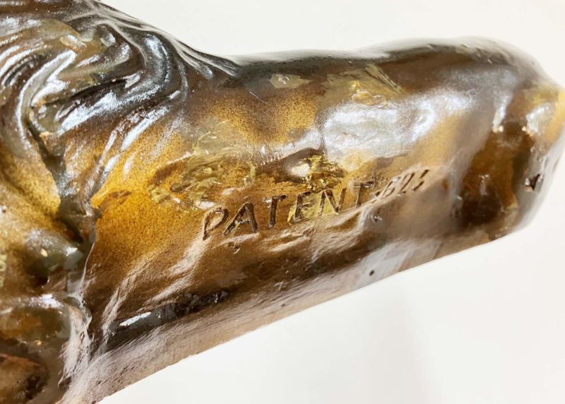 Dit geglazuurde retro honden beeld is gemaakt van gips en is daarna geglazuurd. Vermoedelijk komt deze uit Frankrijk maar daar kunnen we geen garantie op geven.