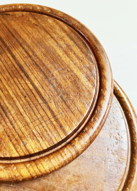 Set houten vintage borden. Japandi / Wabi Sabi stijl bordjes / snijplank