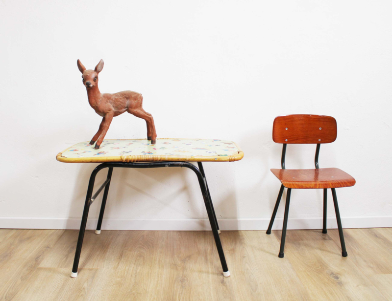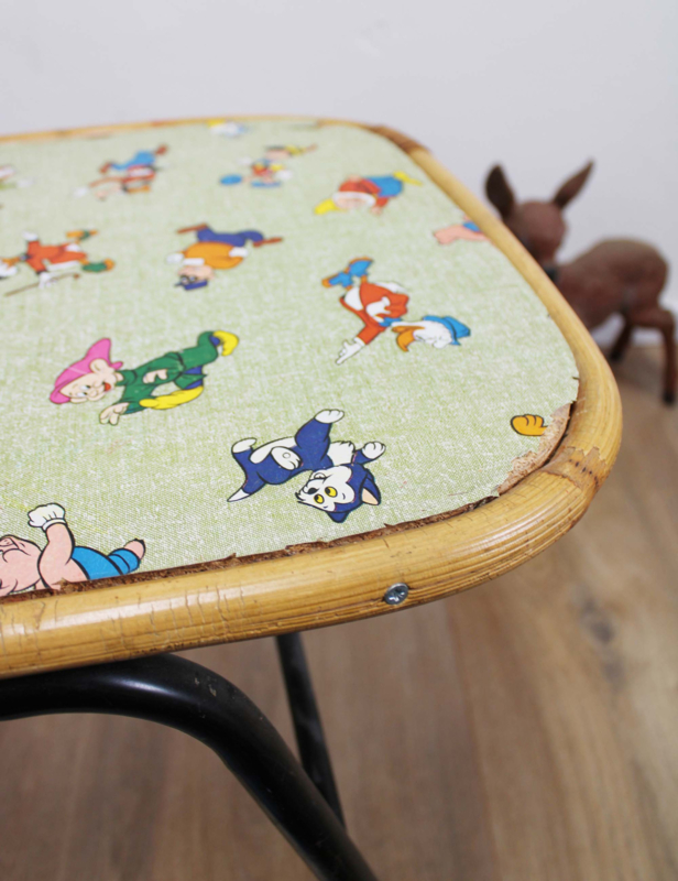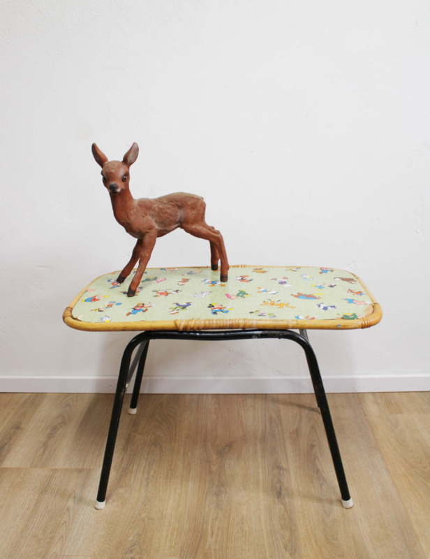 Vintage tafeltje met Disney figuurtjes op het blad.