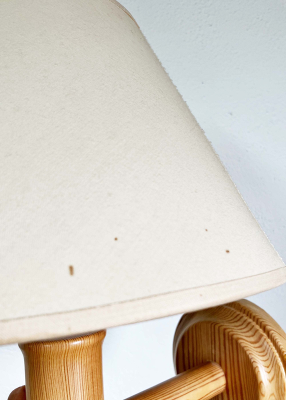 Houten vintage lampje met beige kap.