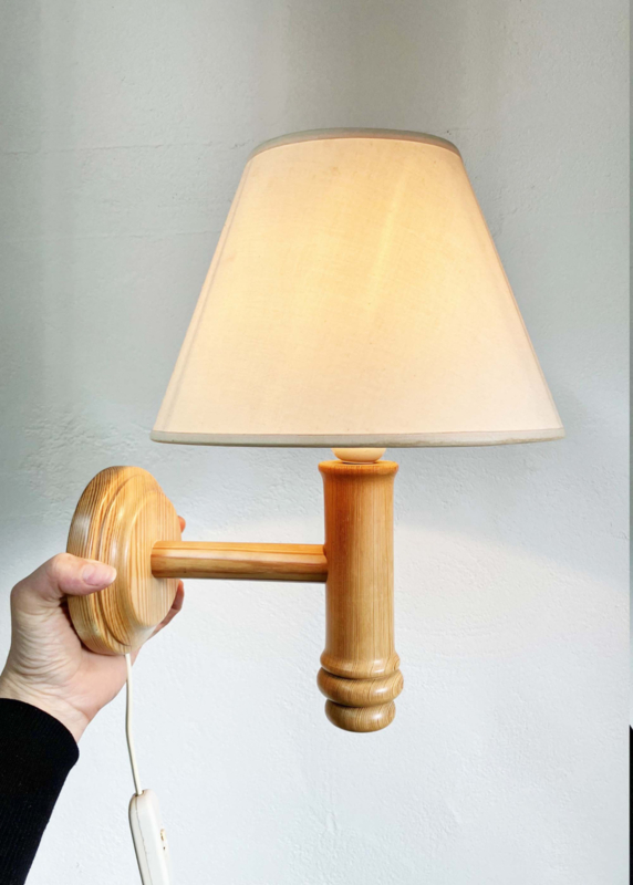 Houten vintage wandlamp met kap. Retro Wabi Sabi lampje