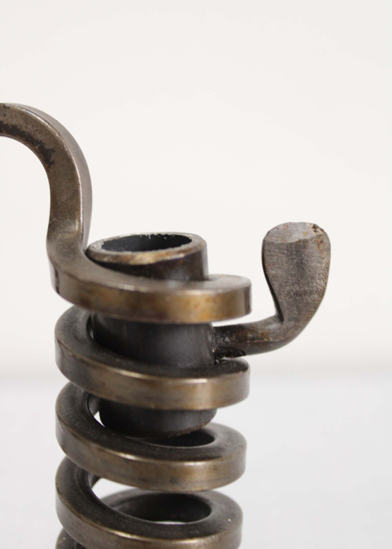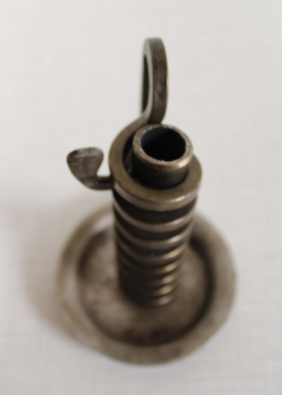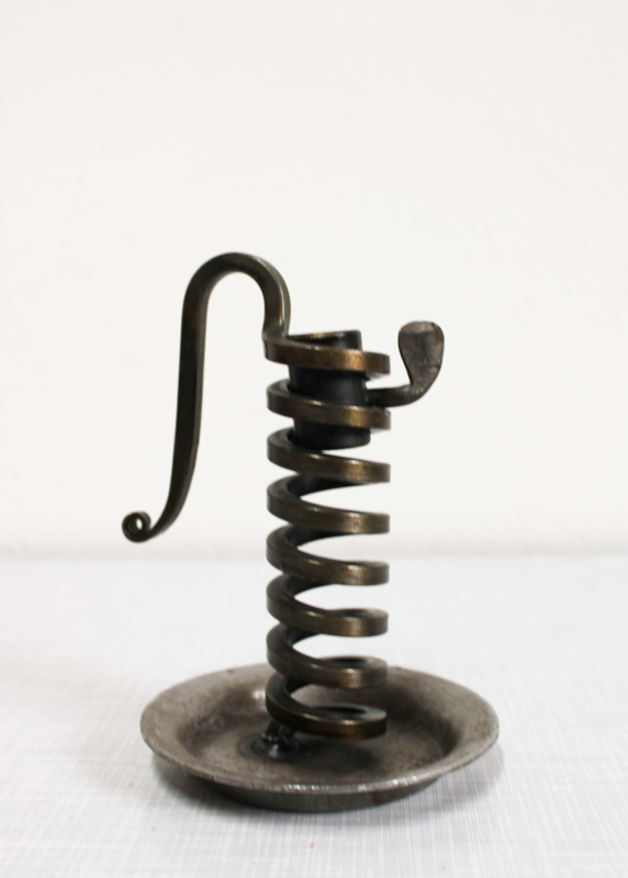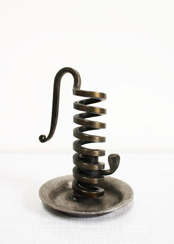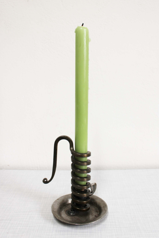 Deze Franse vintage kaarsenhouder is gezien de leeftijd in mooie staat. Het systeem om de kaars omhoog te draaien werkt nog goed, slechts wat normale gebruikssporen.