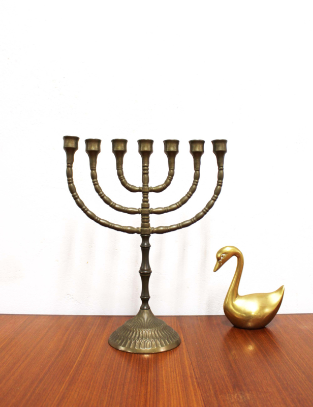 Joodse vintage kandelaar. 7 armige Menora kaarsenhouderGrote Joodse kandelaar geschikt voor 7 kaarsen.