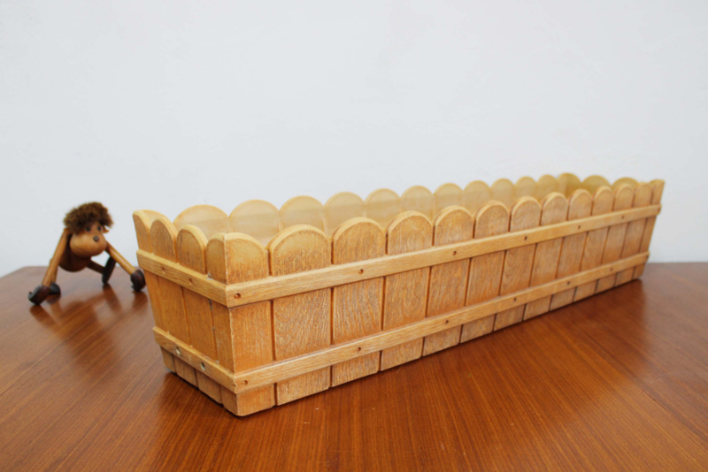 Grote vintage bloembak, EMSA? Retro plantenbak met houtdecorGrote vintage plantenbak van kunststof met houtdecor.