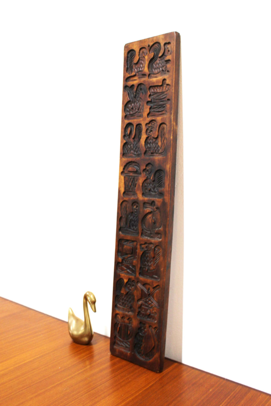 Nederlandse vintage speculaasplank. Houten retro koekjesvorm met 16 motievenNederlandse vintage speculaasplank met 16 vormpjes.